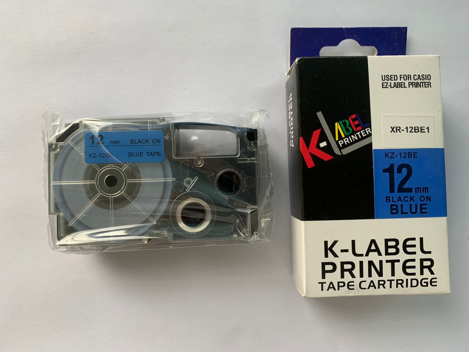 Casio XR-12BE1 - KZ-12BE Fondo Azul Letras Negras - 12mm para Rotuladora Casio Label It Series