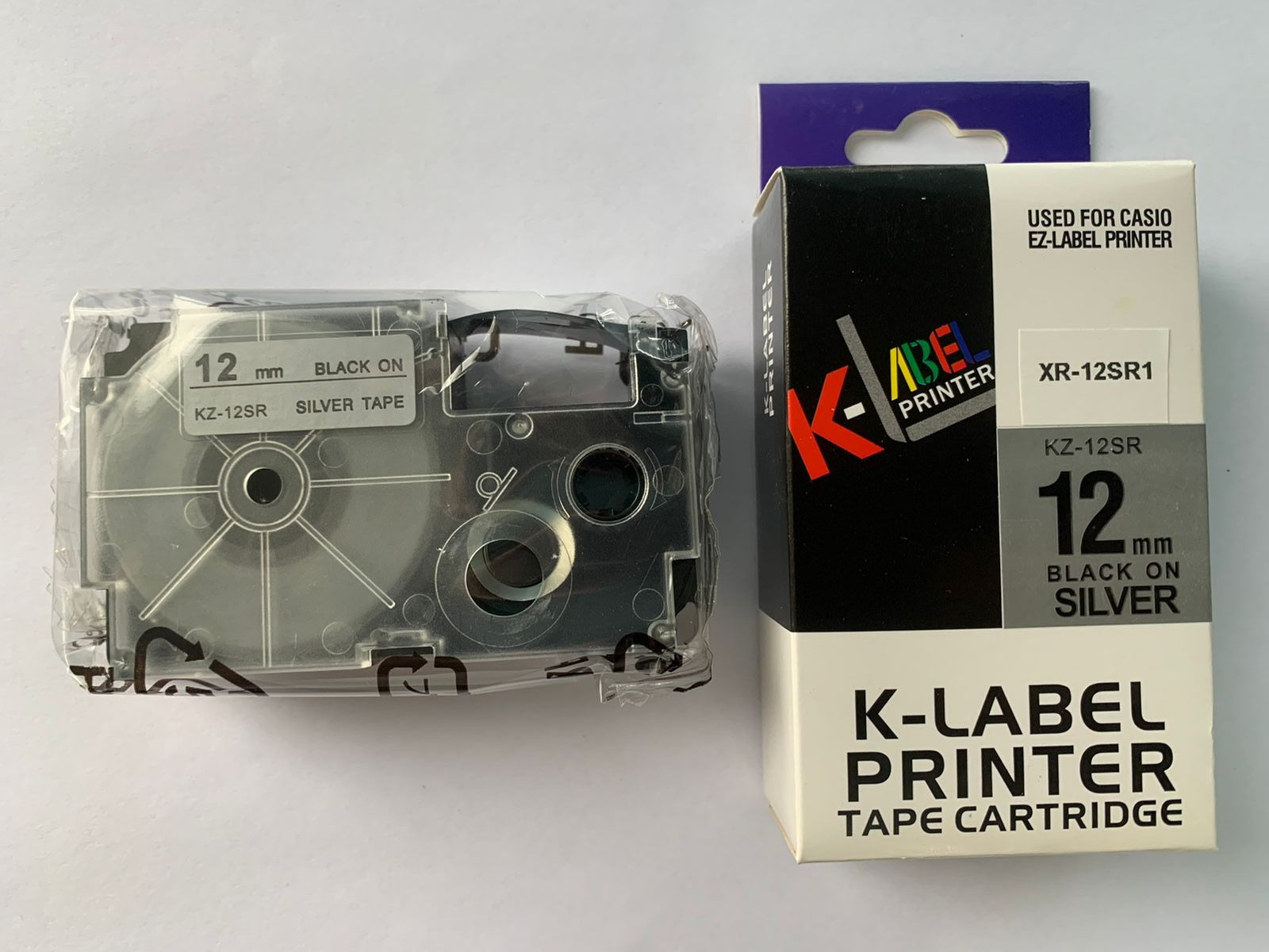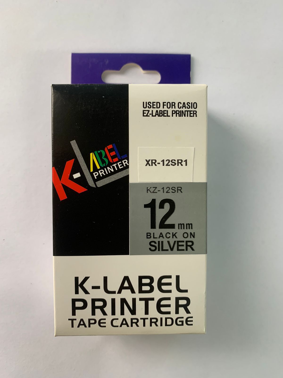 Cinta XR-12SR1 - KZ-12SR Fondo Plomo Letras Negras - 12mm para Rotuladora Casio Label It Series